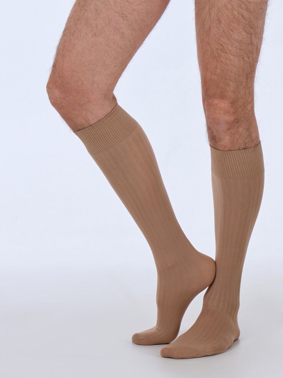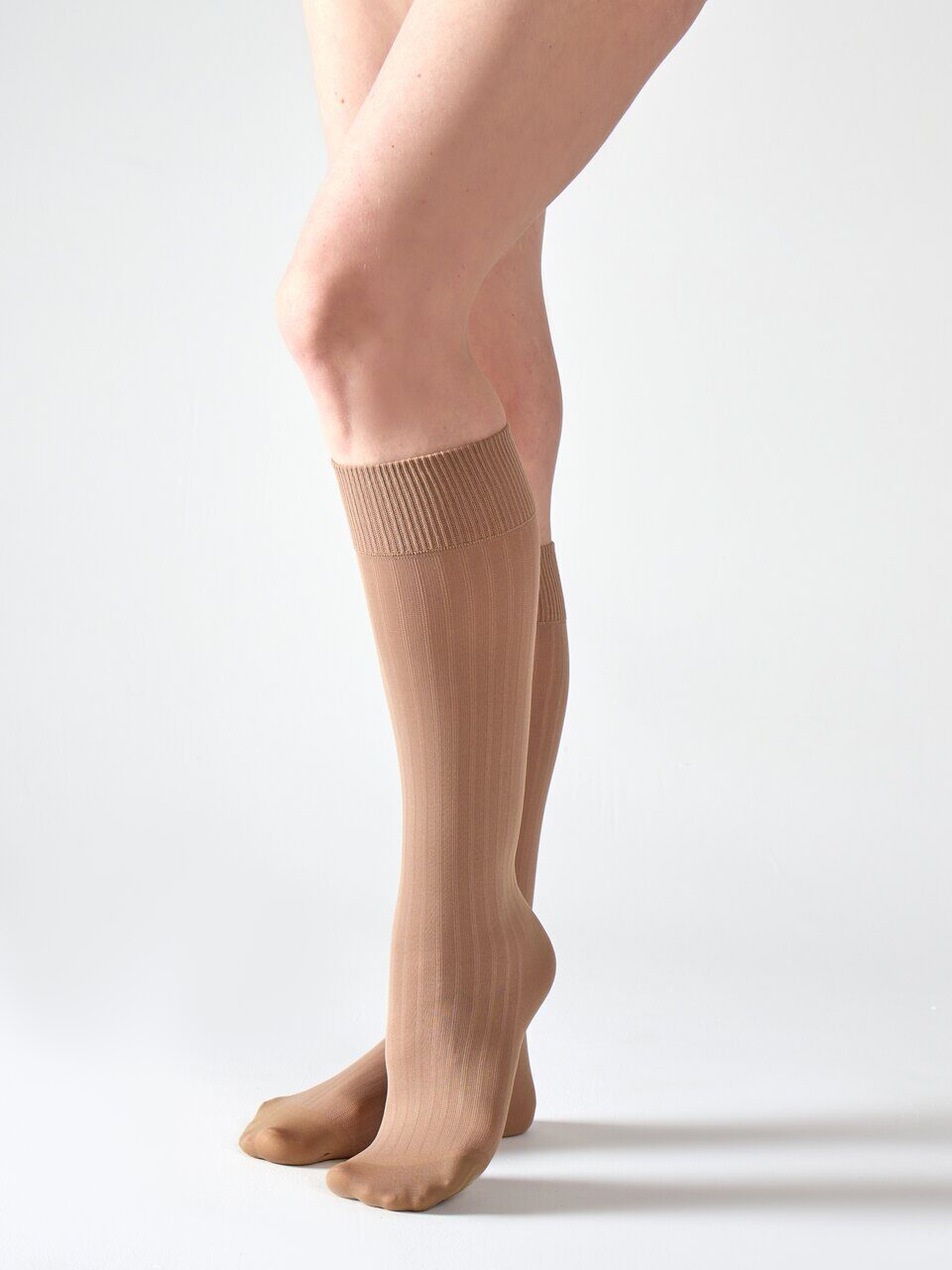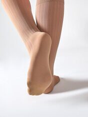 Гольфы (получулки) ПРОФИЛАКТИКА 50 den 1 класс компрессии рекомендованы для лечения начальных проявлений хронической венозной недостаточности, улучшения кровообращения в ногах, для снятия отеков, а также беременным женщинам. Подходят для повседневной носки. Имеют рисунок в виде продольных полосок, усиленный мысок, без отдельно вывязанной пятки, не прозрачные. Мягкие, комфортные, износостойкие, не дают стрелок. Хранить при температуре от +5 до +40°С и относительной влажности 75%. Стирать в теплой воде, сушить отдельно. Срок годности 3 года.