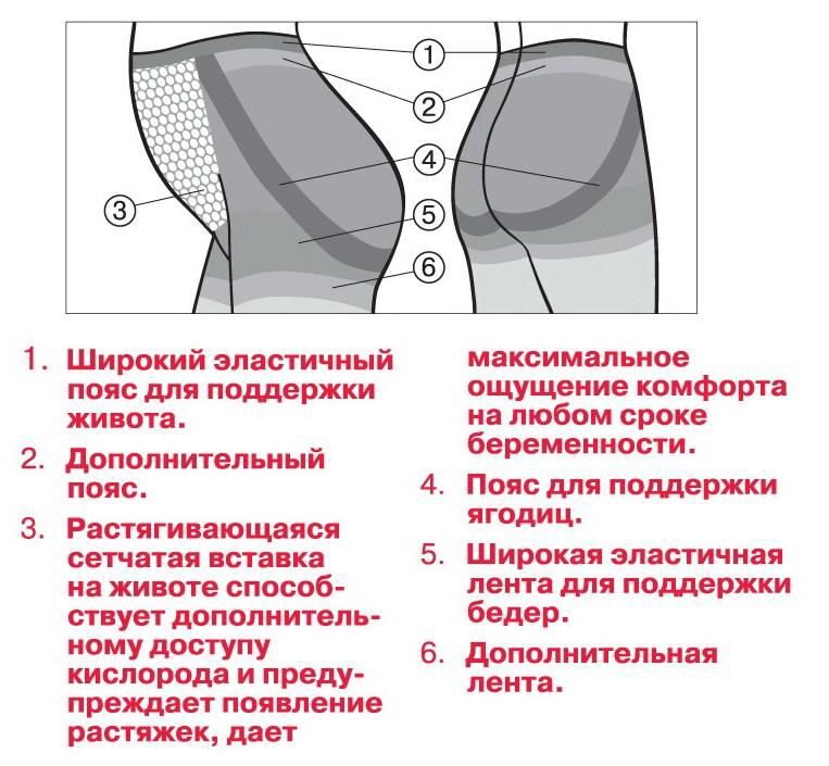 Колготки для беременных выполнены из экологически чистого сырья. Имеют растягивающуюся анатомическую вставку сеточкой на шортиках в области живота. По бокам и под ягодицами вывязаны уплотненные ленты воздействующие на определенные зоны. Такие высокотехнологичные шортики выполняют роль бандажа, поддерживают мышцы передней брюшной стенки ,способствуют смыканию остеального клапана, за счет чего предотвращают застой венозной крови в нижних конечностях.