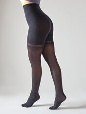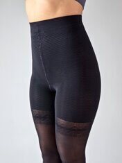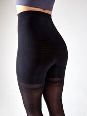 При повседневной носке обеспечивается стойкий антицеллюлитный эффект. По ноге вязка гладкая, прозрачная. Посадка высокая, до талии.